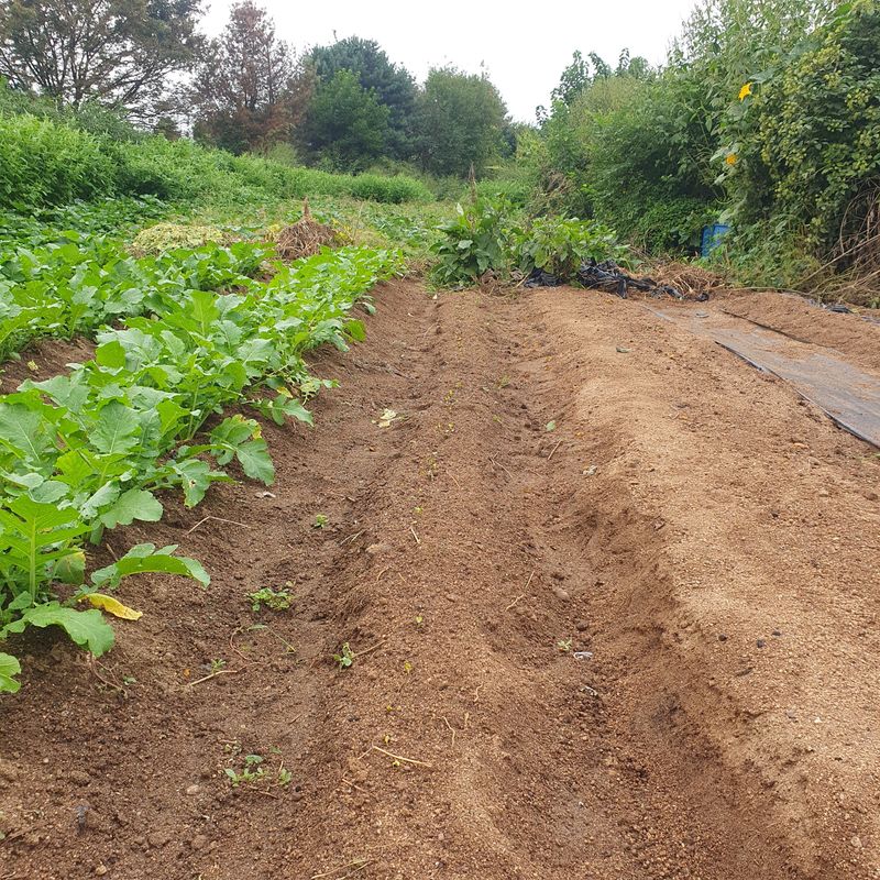지난주 파종한 무 새싹이 잘나왔네요 옆두둑에도 로타리치고 무씨앗 또 씨앗 파종했네요