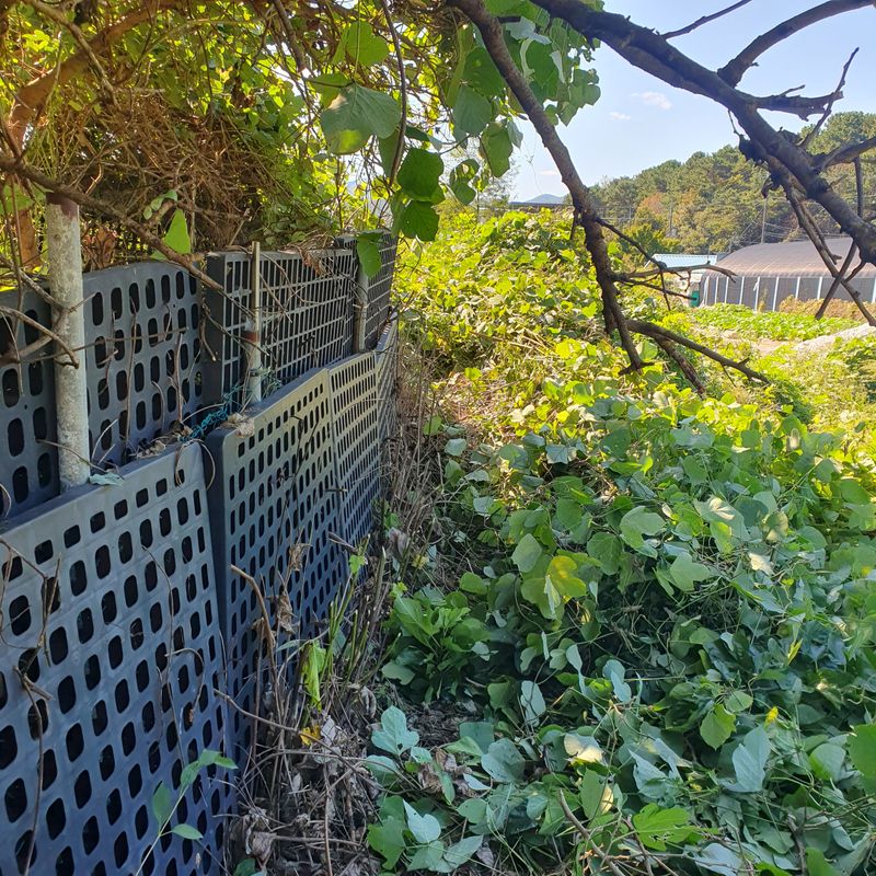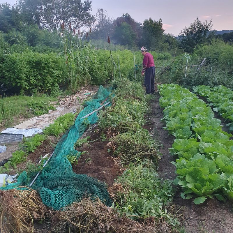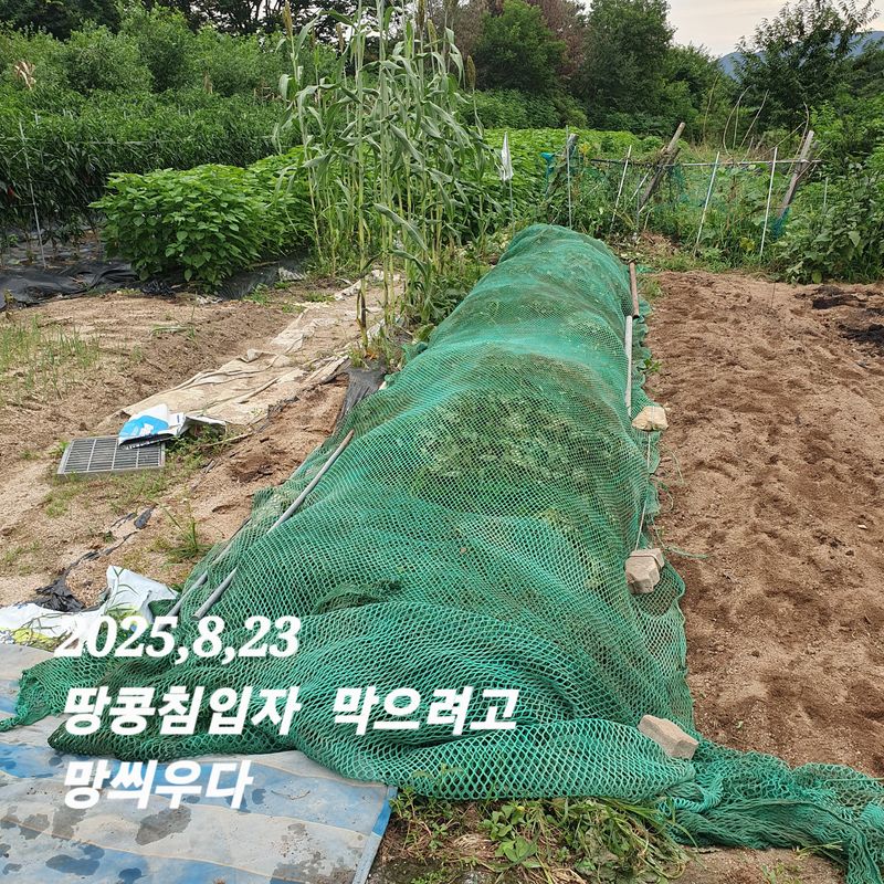 땅콩이 여물어가니 들짐승에게 헌납할수없죠 망을 씌우다