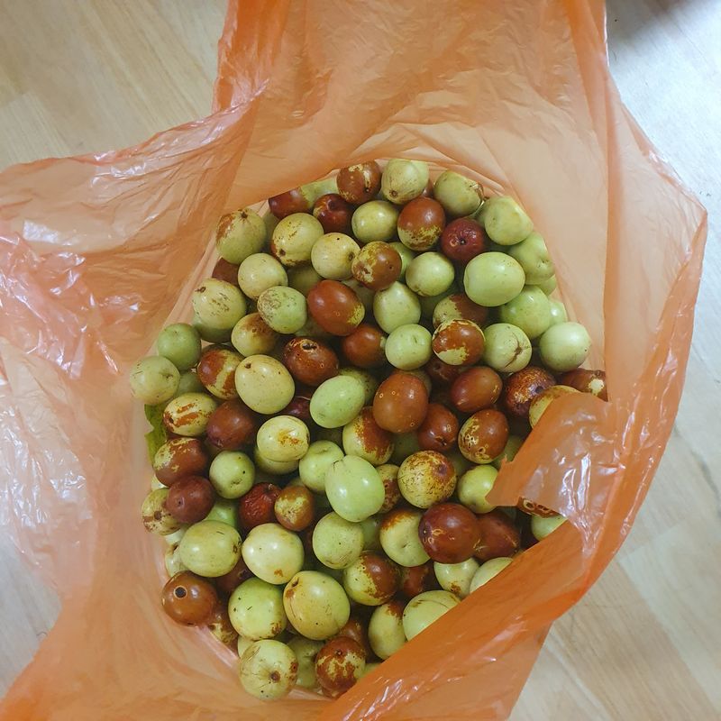 사과대추 이번주에도 수확하다 벌레 들어있는것도 있지만 괜찮은것도 있네요 내년에는 대추꽃필때 살충제 꼭 해야겠네요