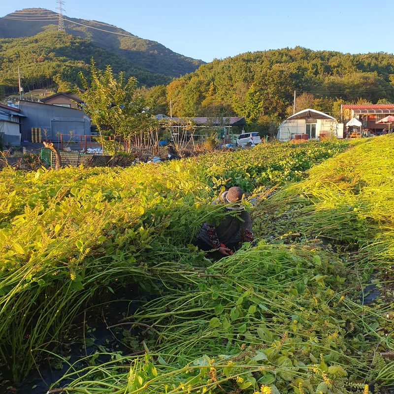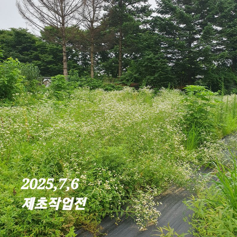 들깨 너무커서 순치기를 낫으로 확실하게 잘라냄 무씨 파종 아침,저녁은 농사일 낮에는 피서