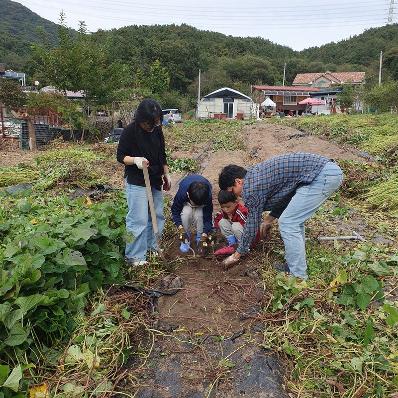 아들,며느리,손자 고구마캐기 체험 가족들 끼리 고구마수확 생각보다 크고 많이 달렸네요 작년보다 많네요