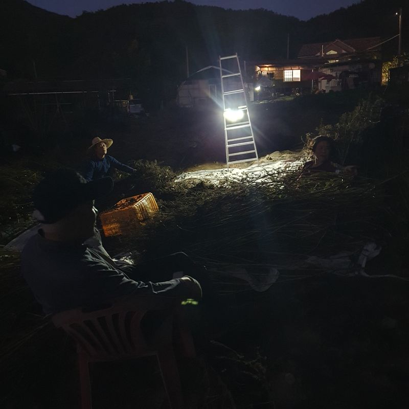 주말농부 오후에와서 정신없이 들깨 탈곡하다보니 벌써 어두워졌네 태양광으로 불밝히고 하고있네요