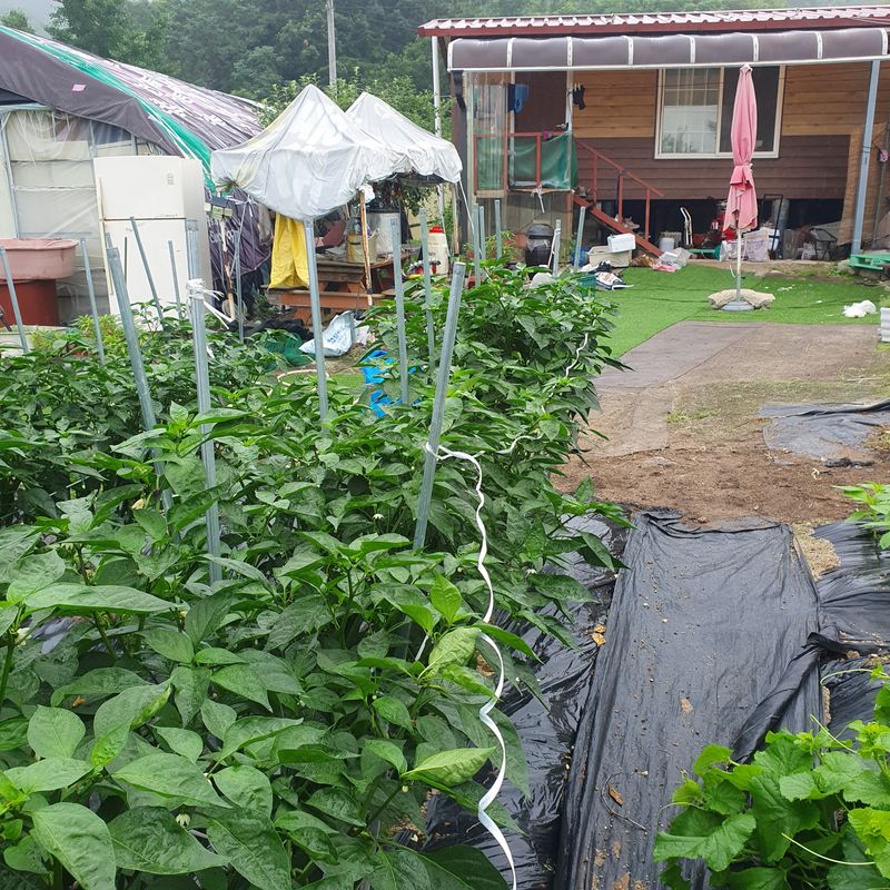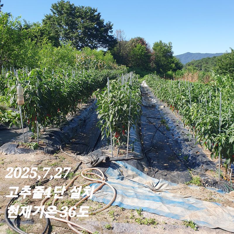 너무 덮다 고추물주고 고추줄4단 줄매고 고추약 방제하고 시간은 아침5시부터 오전 9시까지 더이상은 못한다