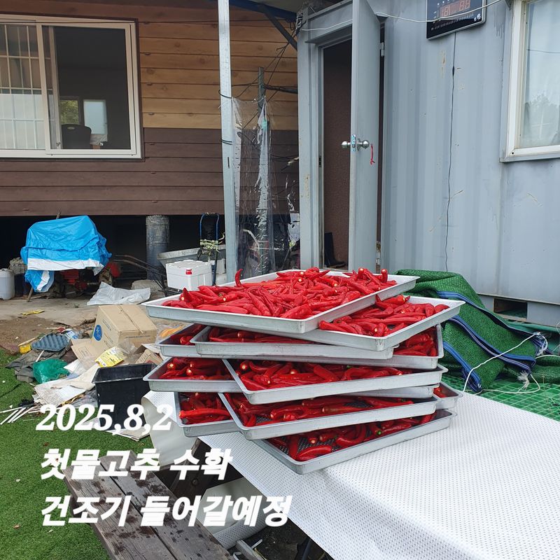 아침일찍 고추따서 세척하고 건조기에 들어감