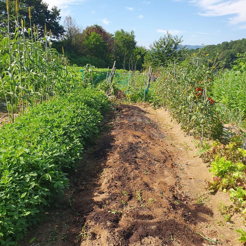 주말농부 이제사 넓디넓은 두둑비닐 멀칭을 마무리하다 땀은 범벅 아~ 근디 쑥버무리 익는 냄새가 나의코를 움직이게하네 이것이 자연의삶 아닐까