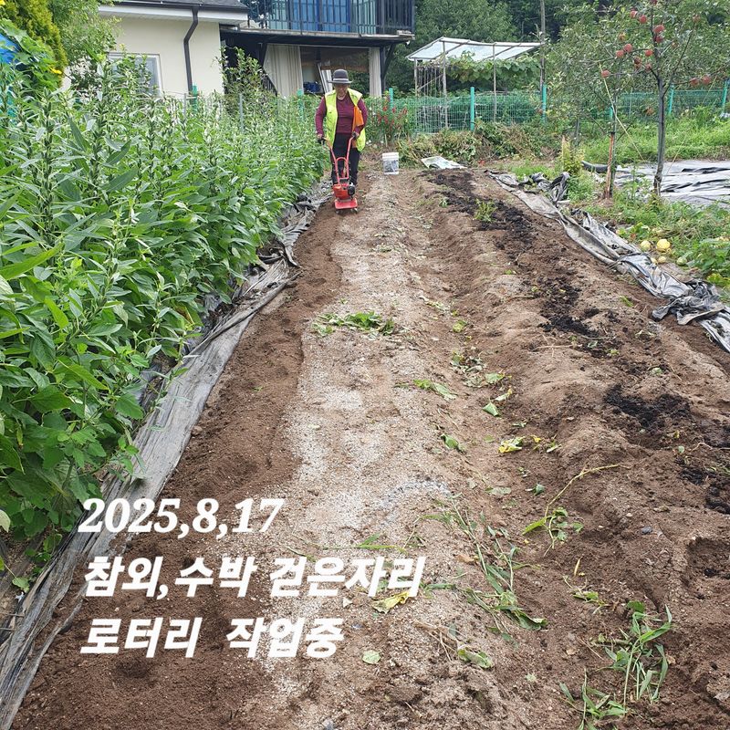 월동무 심으려고 수박,참외.걷어내고 로타리치고 무우씨 파종 미니관리기도 수리