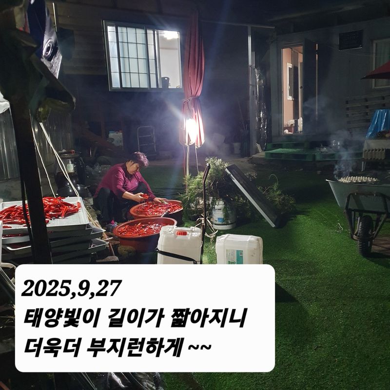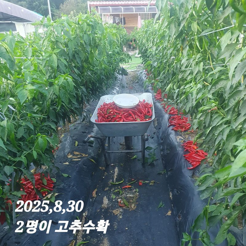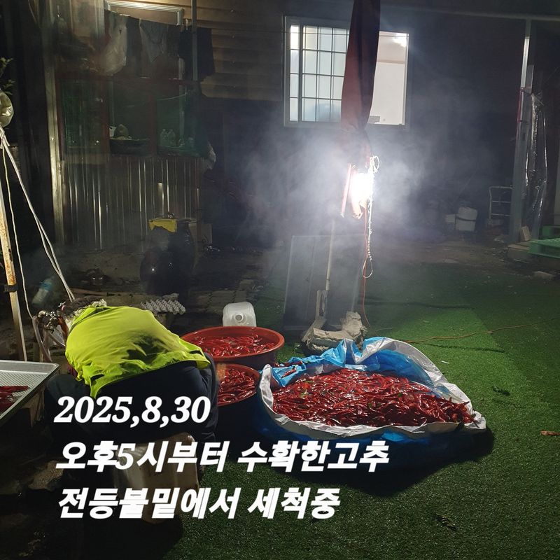 홍고추 2명이 수확 저울이 없어 무게는 모름 주말농부라 밤중까지 작업 혹시 운치가 있다고 하나