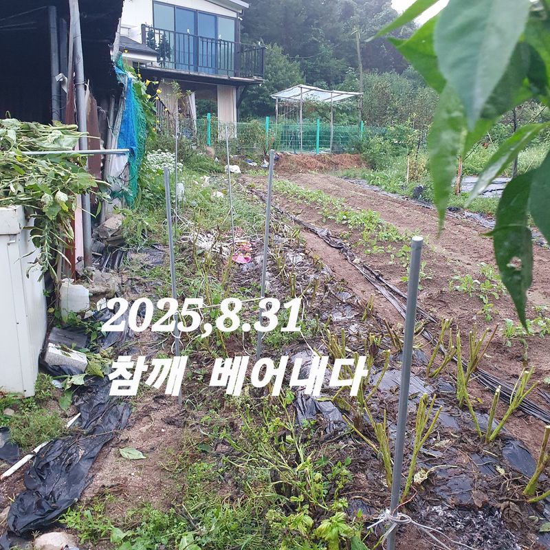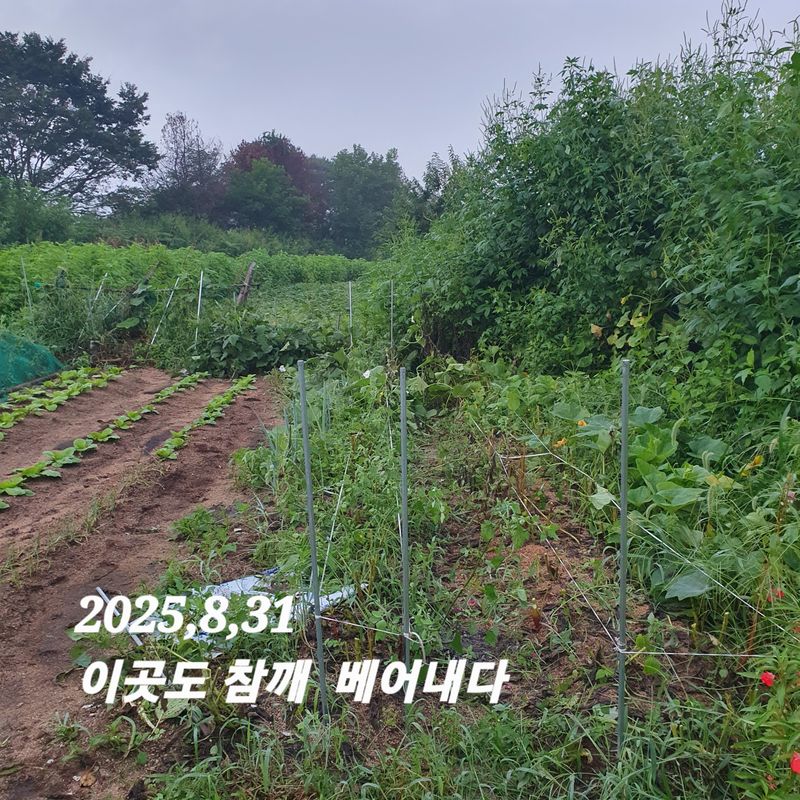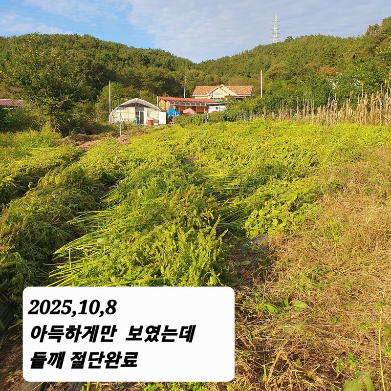 추석 연휴기간 계속되던비가 오늘아침에 안개가 자욱하더니 날씨가 너무좋아서 들깨 베기 작업을 하였다 아득하게만 보였던 들깨가 안식구와함께 빡세게 열심히 베었더니 드디어 끝을 보았다 아 농사는 별소득도 없이 힘들다 하지만 내가 먹을것은 내가 지어 먹는다