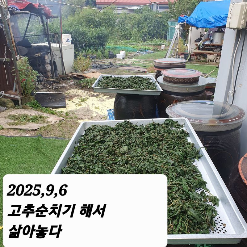 이제 홍고추 수확이 막바지 성장순치기 하다 친순을 나물로 먹으려고 삶아 놓았다 그래도 살충제 탄저약은 살포해야지