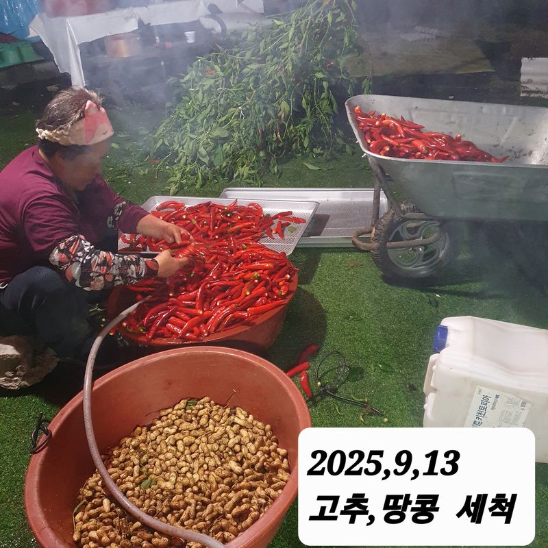 주말농부 부지런히 고추밭와서 고추2물따고 세척하고 건조기 투입