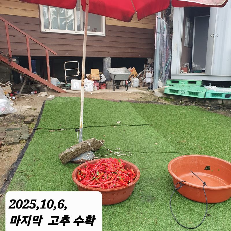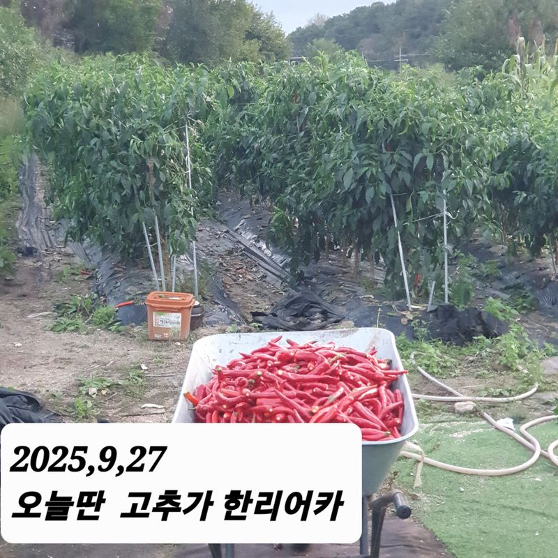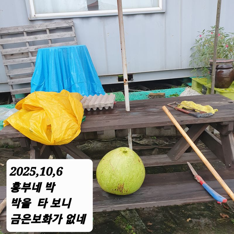 추석 고추 마지막 수확하고 밑둥을 절단하다 흥부네 박을 심었더니 박이 열렸다 익었나해서 박을 타보니 내가 잘못살았나 박속에는 금은보화는 없었다 허허허