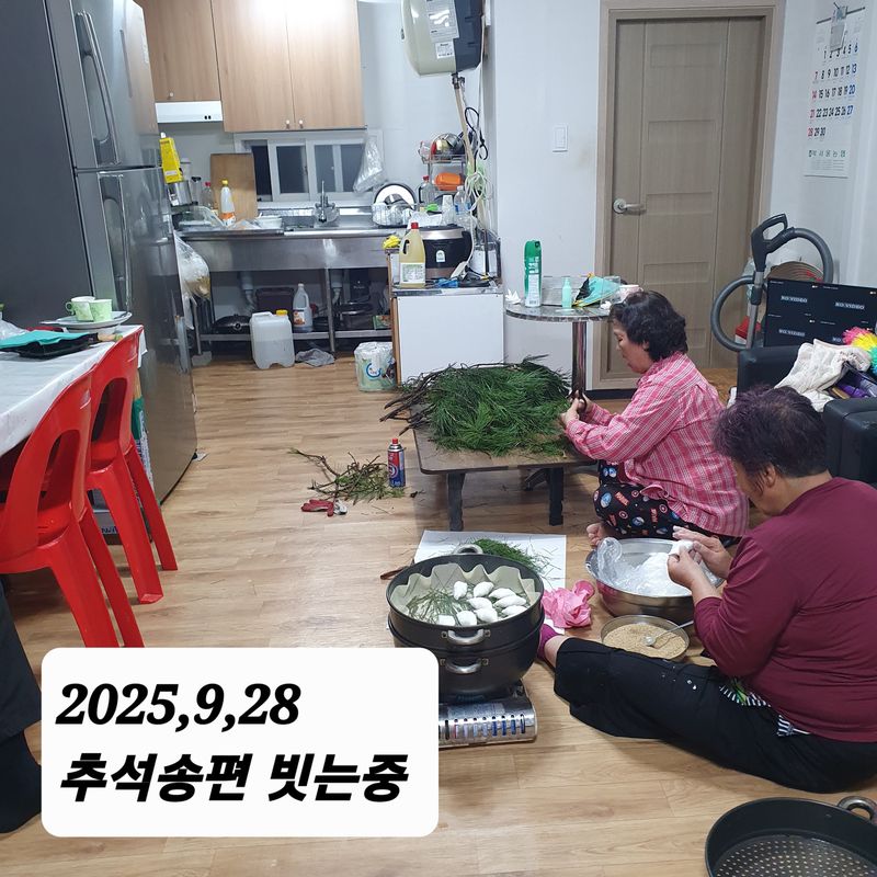 토요일 고추따기전 소나무 가지치기해서 가져오고 오늘은 솔잎송편을 이웃과 함께 빗었죠 송편소는 참깨.콩 이렇게 송편찌는 시간 솔잎향기가 은은하게 너무좋았어요 이번 추석 팜모닝 가족 여러분 건강하시고 더도덜도 말고 한가위만 같아라.행복하시고 건강하셔요