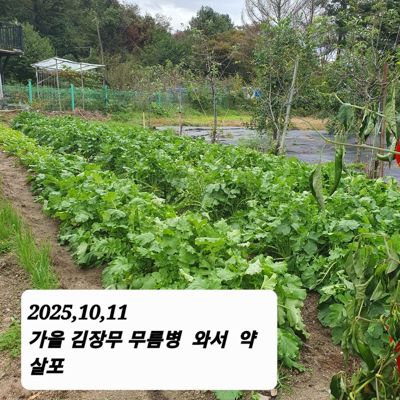 지난주 살충제 효과가 없었는지 여전하게 구멍이송송송 조금더 강하게 ~~ 김장무 복합비료 투여 솎아서 물김치 담구다