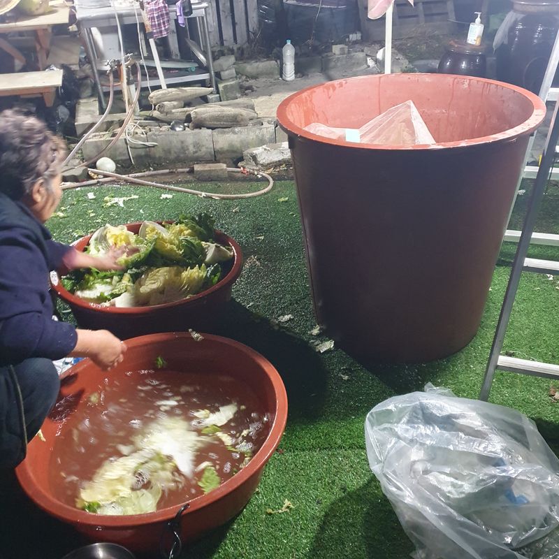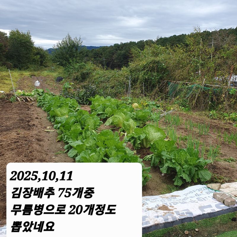 가을걷이의 휘날레는 김장이겠지요 배추모종 75개 심어서 무름병 진딧물 또다른 피해로 제대로된 배추 15포기 건지기 배추가 모자라지요 배추2망 6포기 구매해서 소금에 절어놨죠