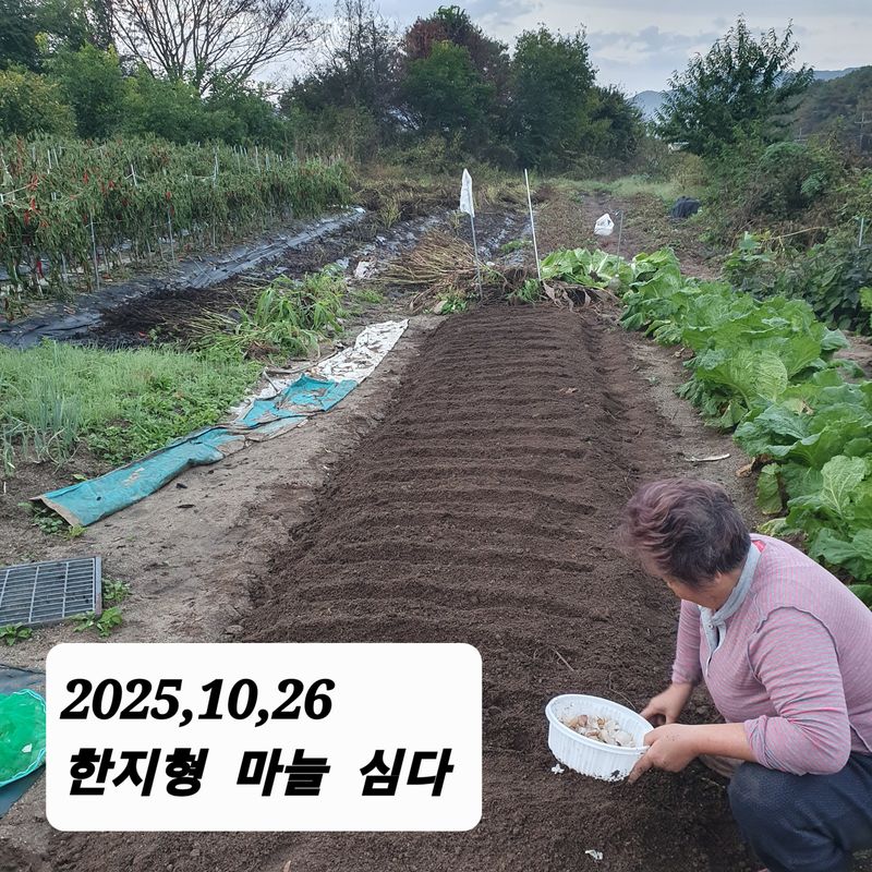 2주전 파종한 마늘밭 이불인 왕겨 덮어주다