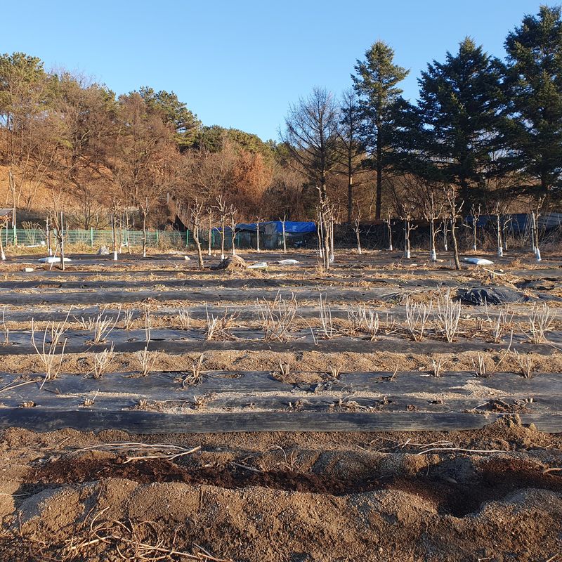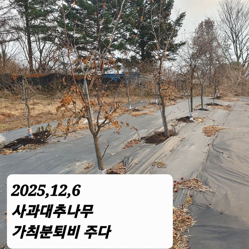 사과대추 월동준비하고 내년에 사과나무 먹이 가축분퇴비 나무밑으로 이동시키다