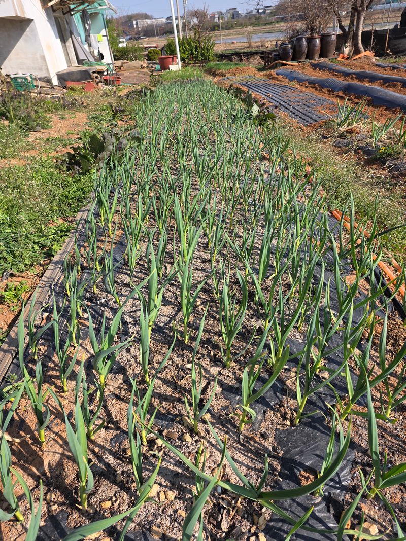 겨울에 비닐이 바람에 날라갔었는데 그래도 마늘이 잘자라 주네요 마늘님 감사합니다.