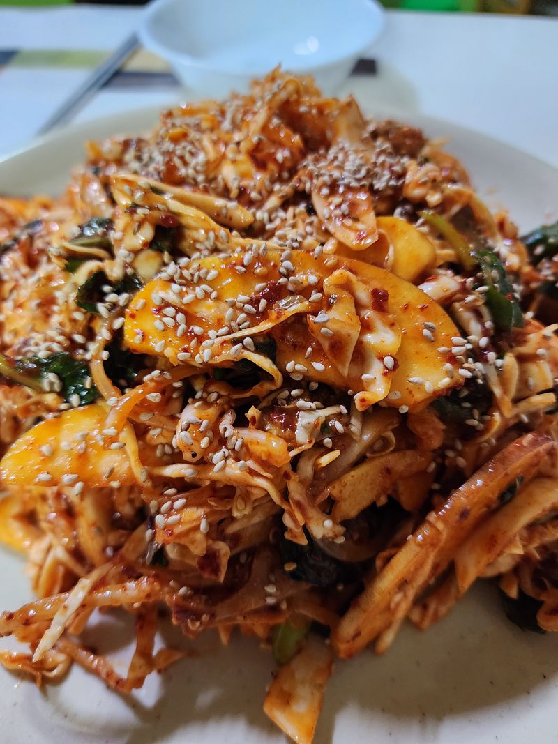 배나무 사과나무 정전 고추씨앗 파종 잘록병약 뿌려주고 배고파서 골뱅이 무침 해먹었어요^^