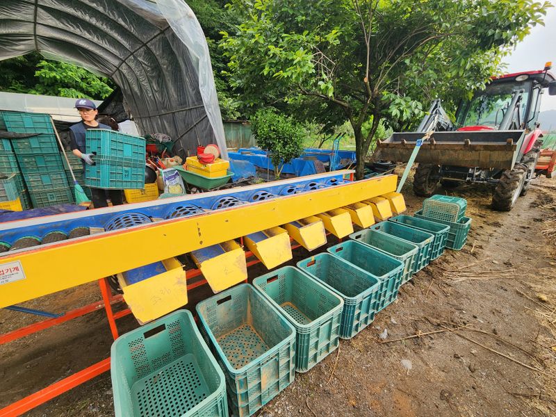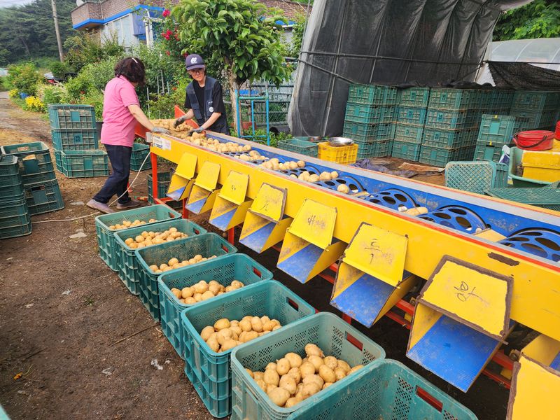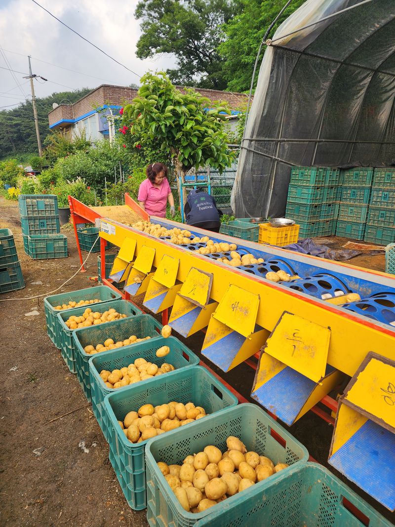 농기계임대사업소 에서 감자 선별기 임대해서 하루종일 감자선별과 박스작업 했습니다