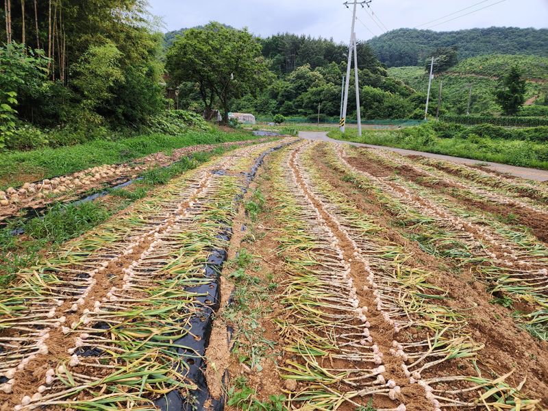 한지형 육쪽 마늘 캤어요 밑이 잘들어 힘든것도 잊었네요