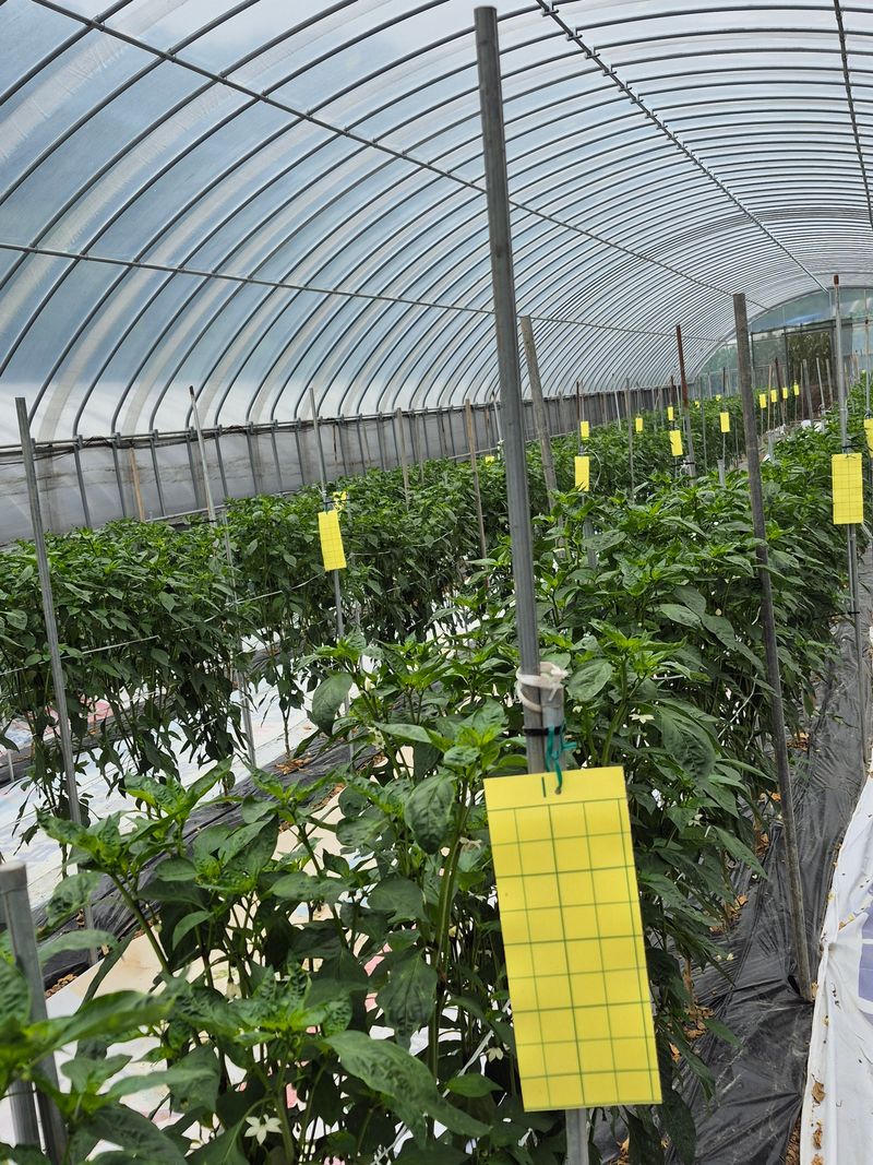 하우스고추 담배나방 총채 진디물 방제하고 줄 띄워줬어요
