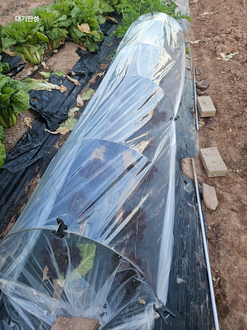 김장 배추와 무우를 심으면서 틈새에 상추를 심었는데 다음주 화요일부터 기온이 많 이 떨어진다고 해서 비닐을 덮 었네요. 내일은 일찍 못가볼거 같아 비 닐을 약간 올려놓고 왔습니다.