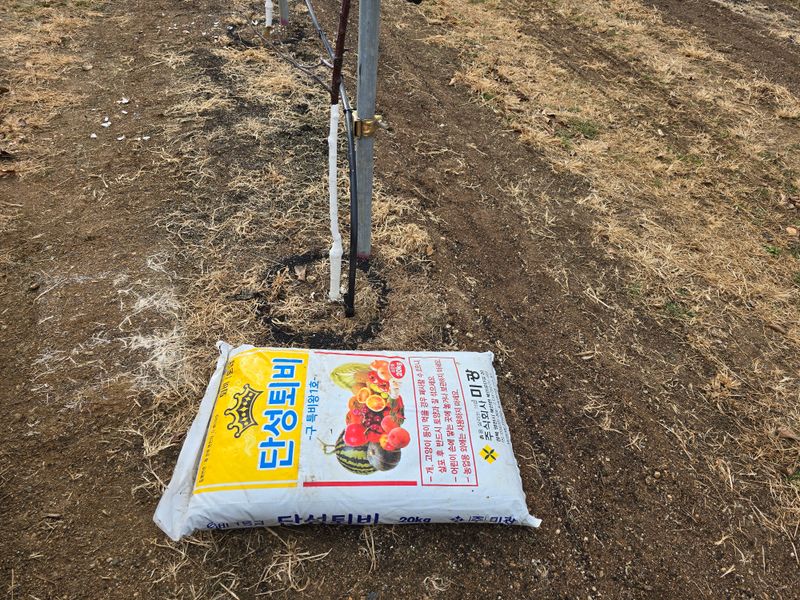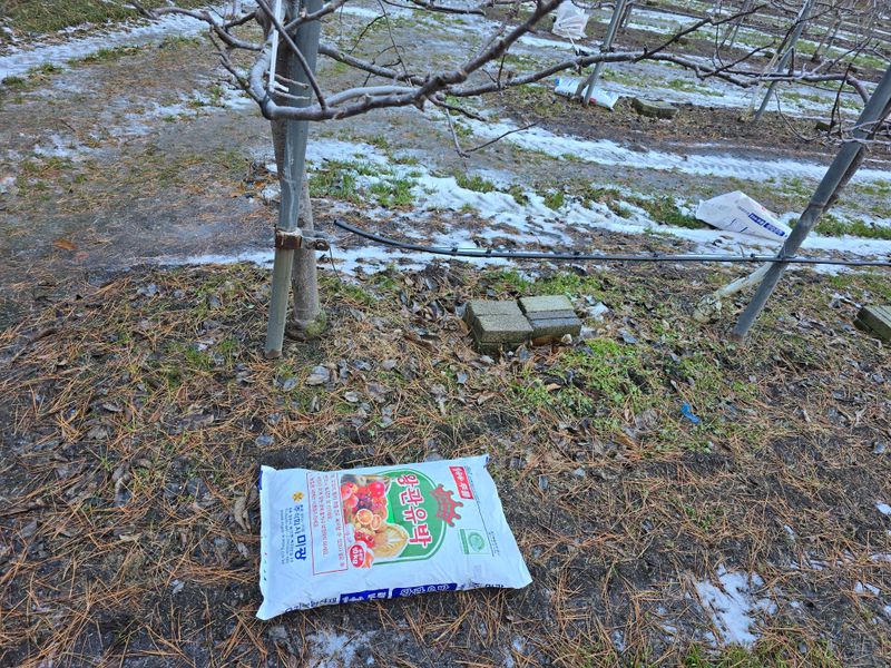 냉해방지제살포(오후1시~눈날림) 부사 1,000L(5대) 꽃게아미노산-2L 질산칼슘-6kg 붕산비료-500g 전착제100ml ×2