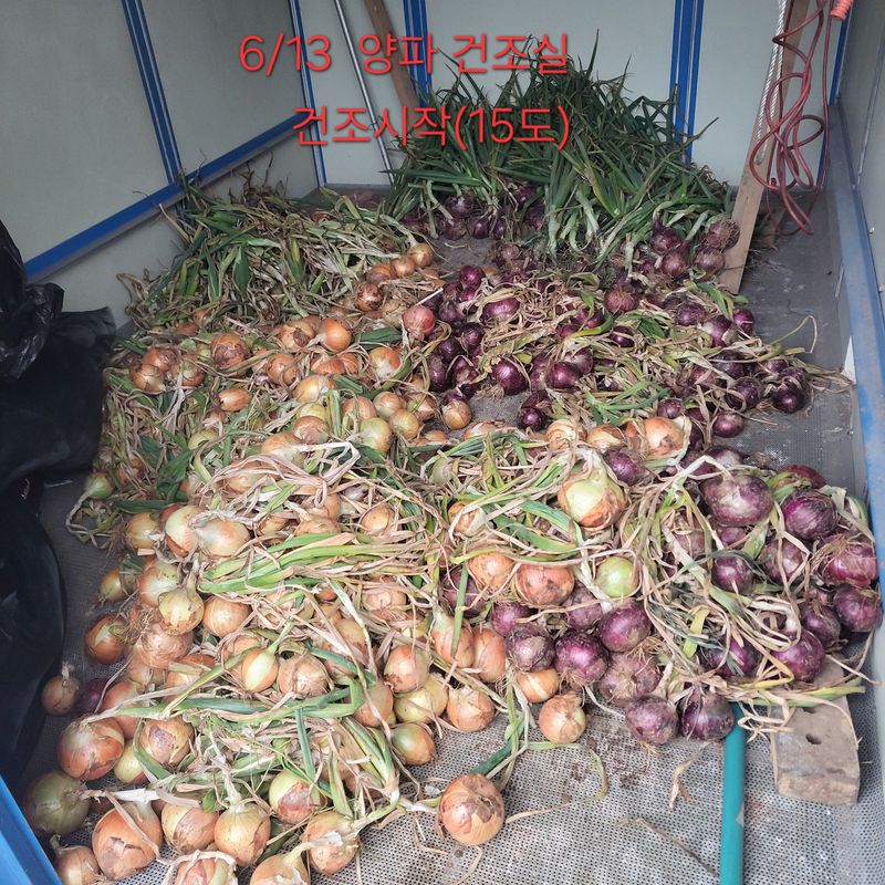 6/13 날씨:맑음 16시부터 비옴 양파 건조실 이동 및 건조(15도)시작