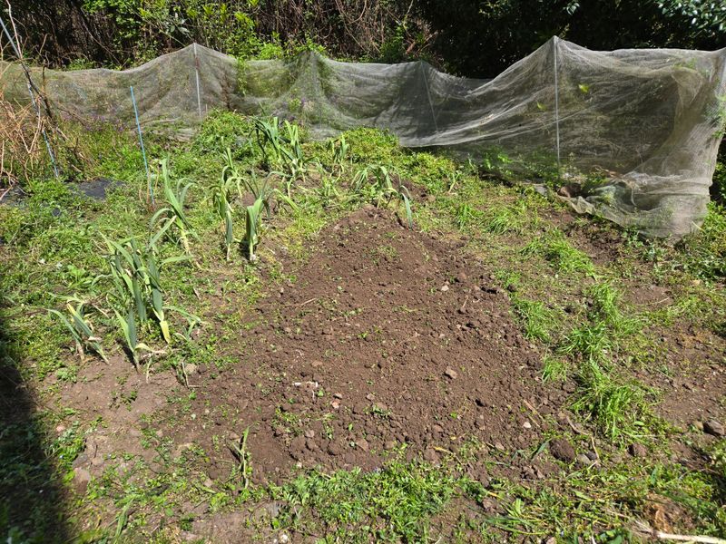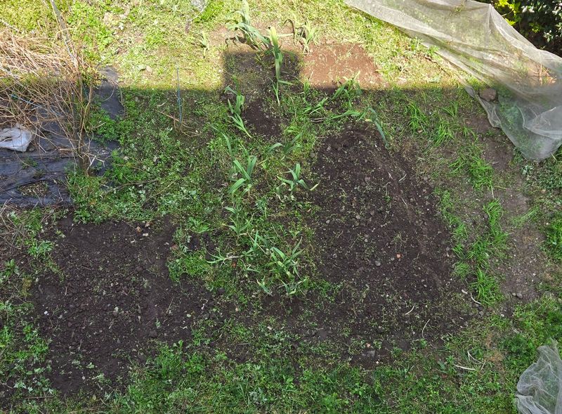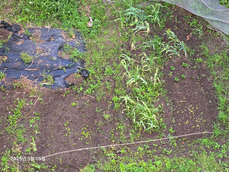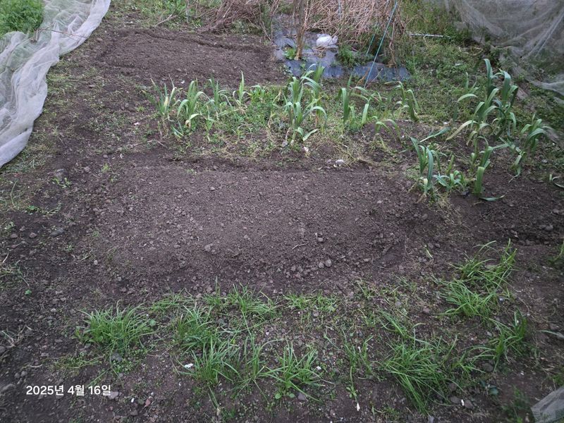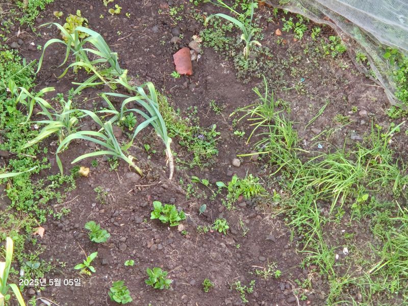 잡초 뽑고 돌멩이 고르고... 상추밭과 부추 밭을 조성했습니다. 마늘은 크게 자랐는데.... 그냥 뿌리만 있어 남겨두었습니다