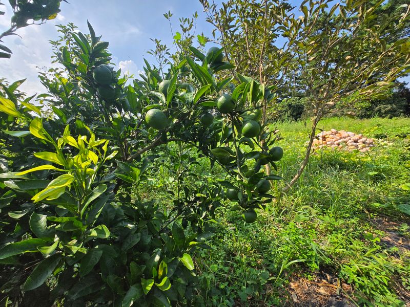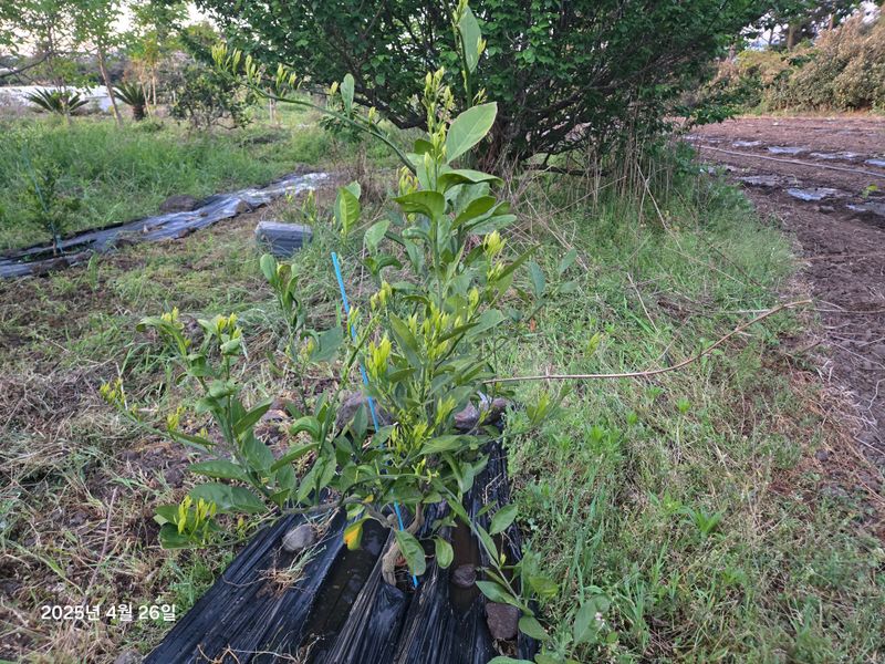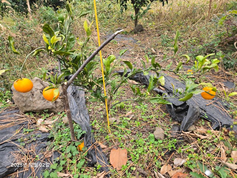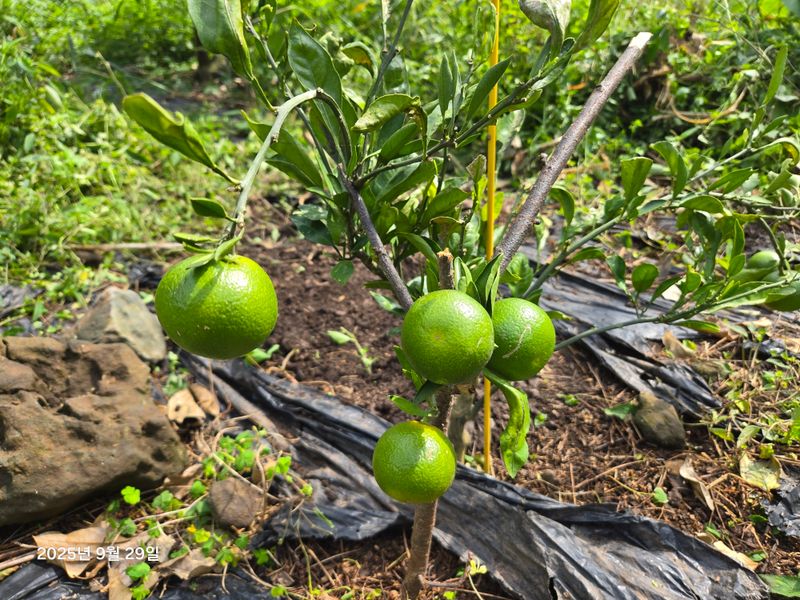 아직은 묘목 티를 못 벗어난 감귤들입니다. 주변 덩클식물드루제가 해 주고 플도 베고 어제 잎에 뿌려준게 효고ㅓ가 있기를 바랍니다.
