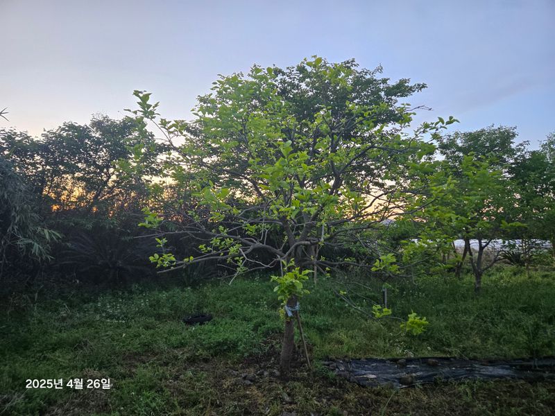 조천읍에서 내 나무심기에 참여하신 선착순 200명에게 석류나무,감나무,무화과나무,매실나무,천리향 가운데 네 그루를 선정 해서 드리는 행사가 있어 참여했습니다. 밭 가장자리에 석류 세 그루, 매실 한 그루 식수하고 왔습니다.