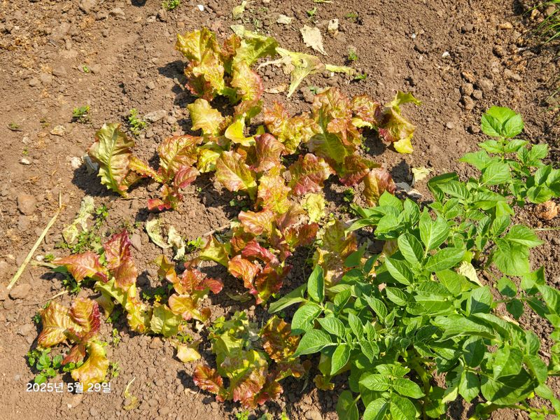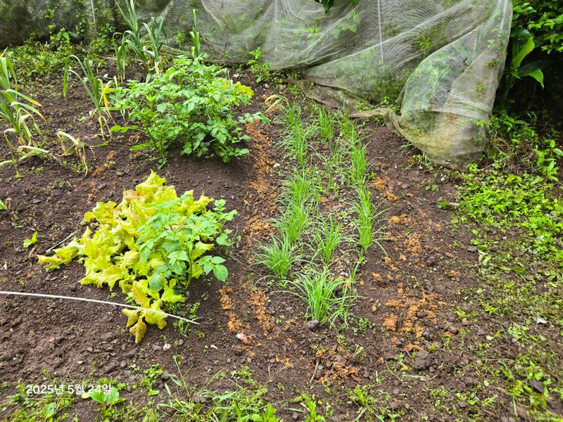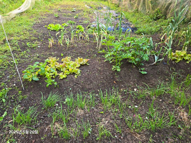 비가오니 물을 주지 않아도 되어 좋다. 상추와 부추 감자도 싹이 나와 잘 자라고 있다. 다만 잡풀이 더불어 자라서 늘 풀 제거에 힘 써야겠다.