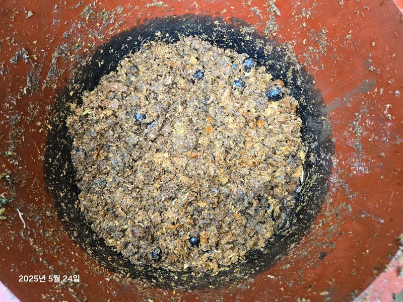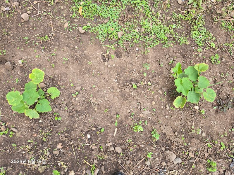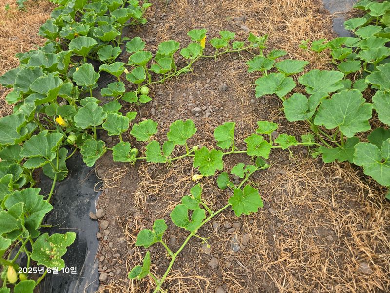 단호박 및 참외와 수박 봄비속에 풀도 뽑아주고 즐기가 잘 뻗어자라도록 해줌. 매실이 익어 갈 무렵 매실 땀. 감귤 열매 속아주고 진딧물 약 필요성 느낌.