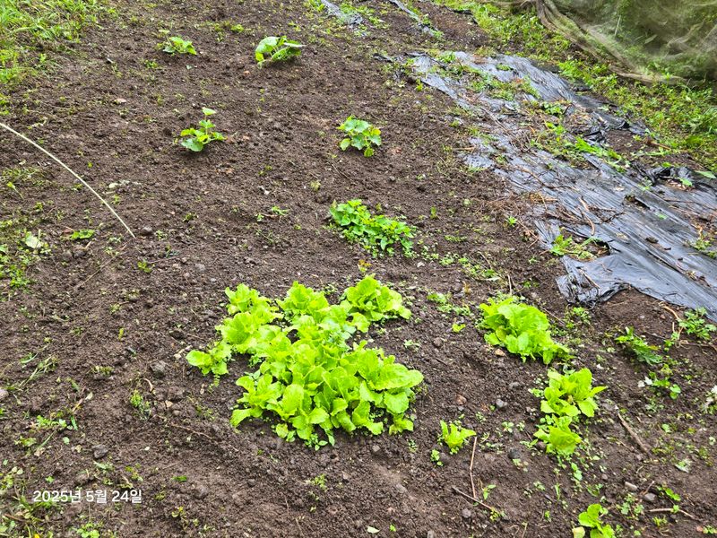잡초들을 뽑아내고 적상추와 청상추를 흩뿌리고 부드러운 훍을 덮어주었숩니다.