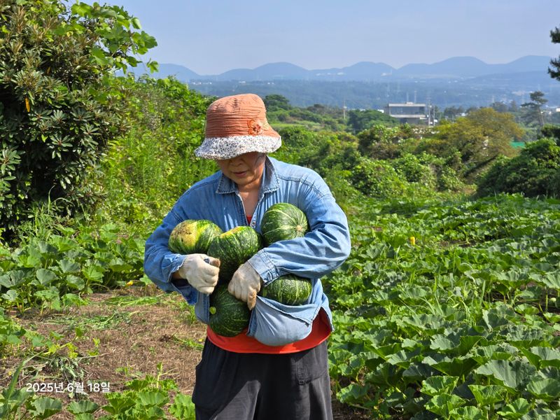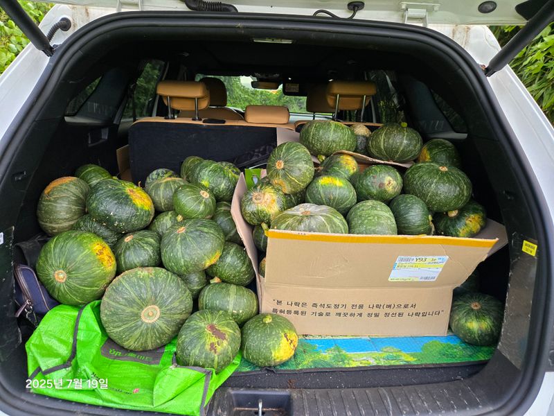 단호박 수확하고 20개 주문했던 분께 전달함. 너무 가물어 감귤나무와 석류나무 등 나무에게도 물을 주고 수박과 참외 꽃이 피고있는 작물 위에 물을 주었으니 이제 촉촉하게 물을 먹고 잘 자라는 모습을 기대 해 봅니다.