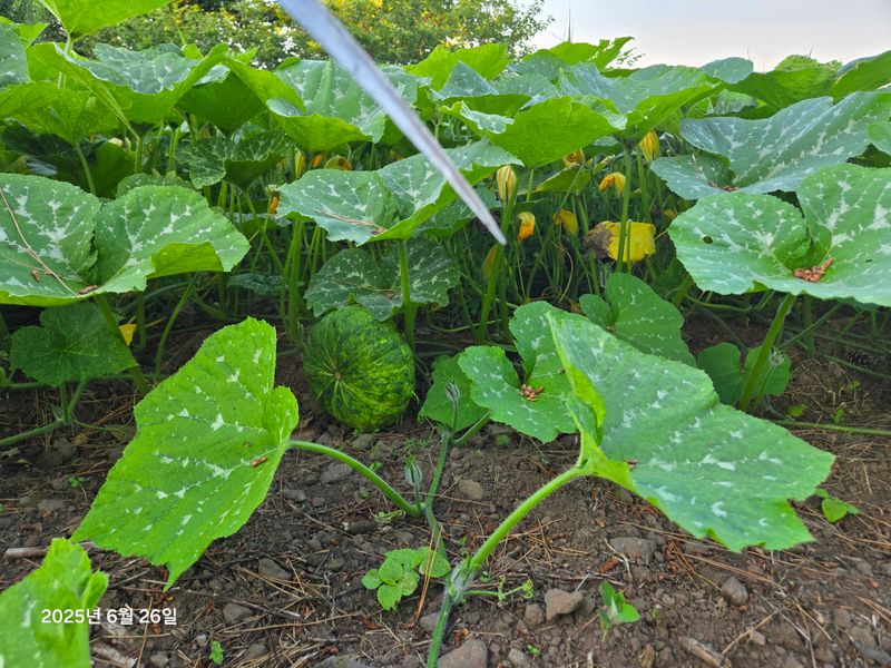 단호박 첫 수롹을 했습니다. 향후 게속 호박을 열더촉 끝단을 잘라주는 작업도 하고 풀은 보이는 대로 즉시 뽑아 주었지요 수박도 질 크고 있습나다.