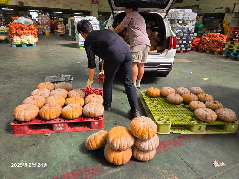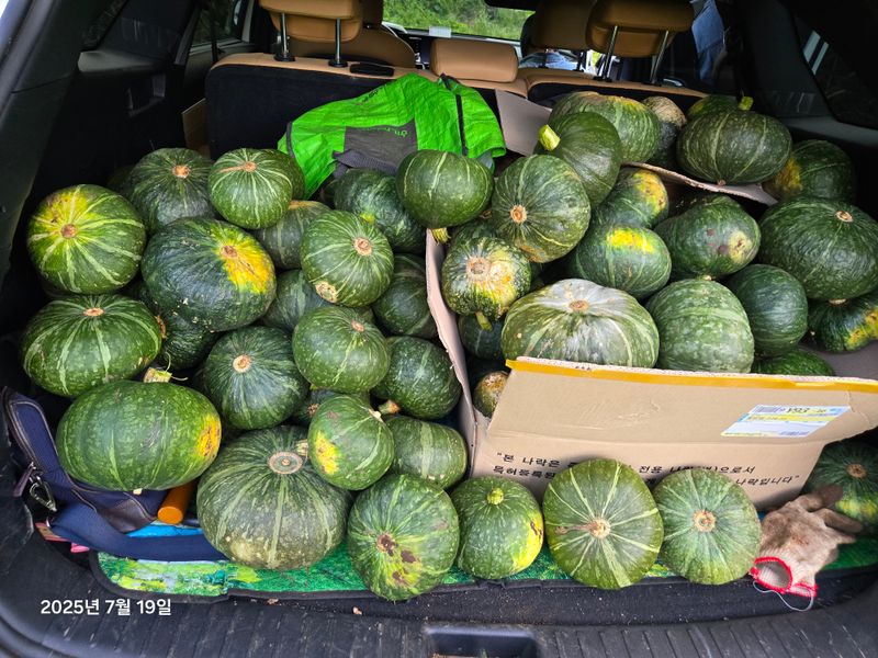 단호박은 수확을 해서 가당 2천원 받고 식당에 납품 했습니다만, 맷돌호박이 문제네요. 5kg 정도 되는 호박을 잘 키워놓았는데...판로가 없어서요. 농협 공판장에 가져가면 거져 헐 값에 인수한다는 소문이구요. 차라리 인심이러도 쓰게 나눔 할까요?