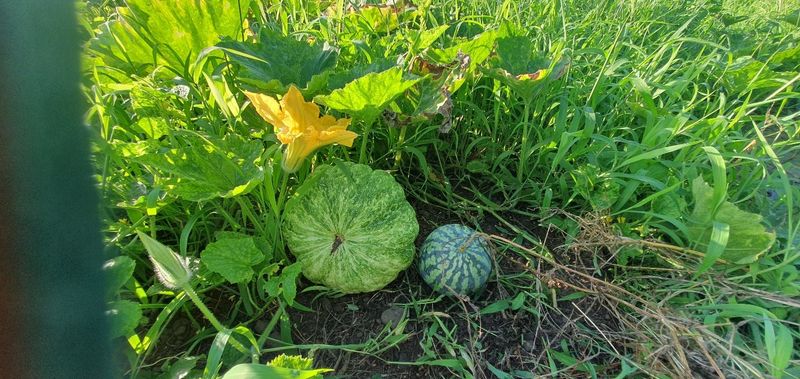 풀메기. 익은 단호박 소량 수확했습니다. 수박을 하나 따왔는데 아직은 악지 않았네요.^^