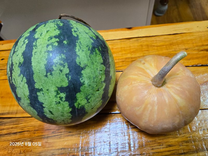 단호박 수확하고 수박도 수확하다. 참외도 첫 수확하고 맛을 보도록 해야겠다.
