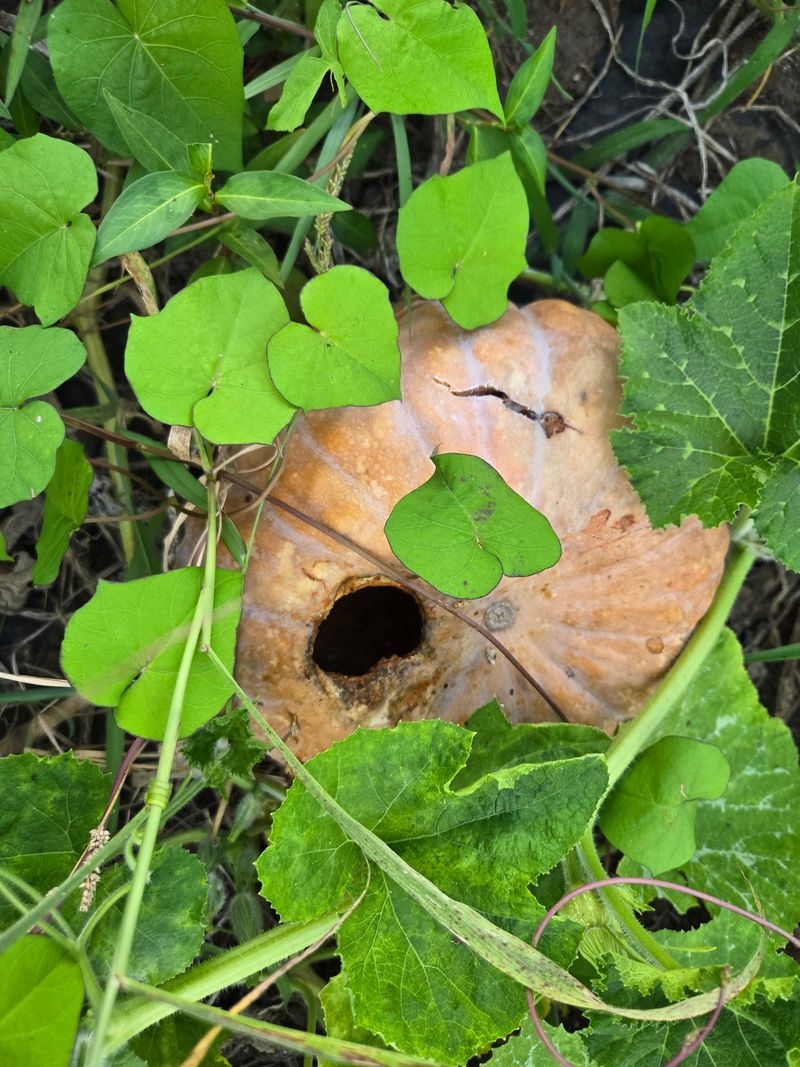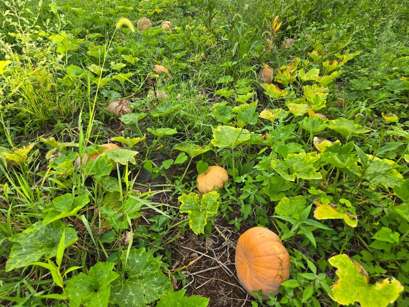 늦게 익어가는 단호박 마무리. 너무 자란 잡초때뮨에 호박 찾기도 어려율 지경입니다.