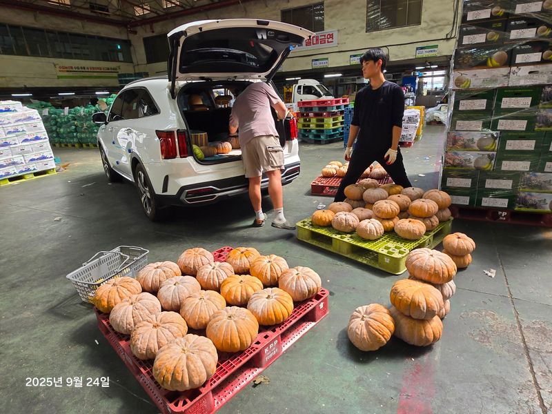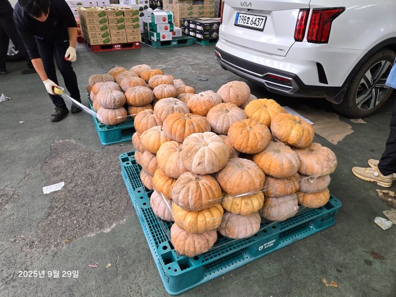 잘 익은 호박을 처음으로 하나로마트 농산물 경매장을 찾아가 한 차 븐량을 맡겼습니다. 이틀 뒤 쯤 걍매 후 입금 될 거라고 허더군요. 호박이 필요한 식당에 작은 구멍난 호박을 갖가주고, 밭의 남은 호박을 다음 날 또 맡기기로 했습니다. 당근에서도 한 분이 오셔서 다섯...