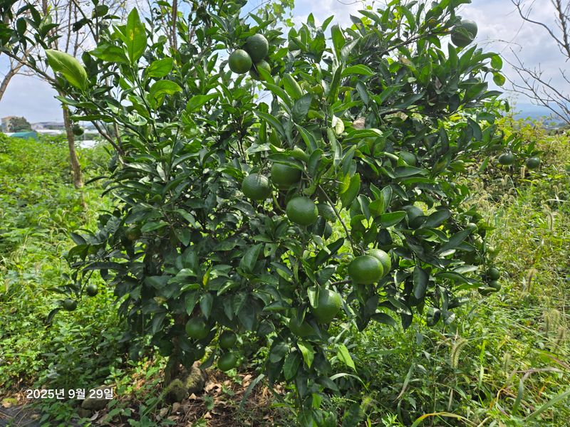 묘목을 살 때는 기억을 했는데 지금은 품종을 알 길이 없네요.^^ 나중에 감귤이 익어갈 때며면 겠지요? 열 그루 정도 재미삼아 가꾸어 봅니다만 어차피 때때로 진딧물약은 해야겠던데...그냥 방치하며 견뎌내도록 하고 있습니다. 방치는 곧 자연산이 되는거죠.^^