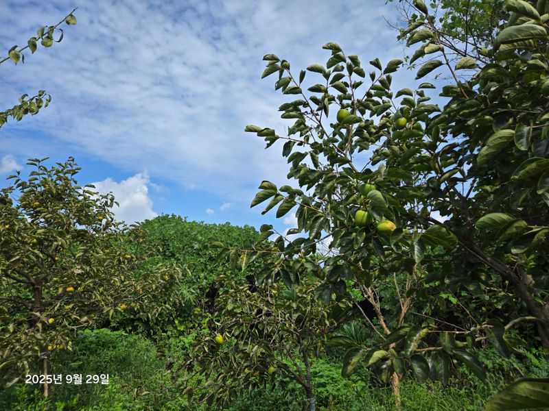 감이 익어갑니다. 쿰직한 대봉과 단감도 맛이 깊어 갑니다. 몇 그루 안되지민 감귤들도 조만건 노랗게 익어갈 듯 합니다.
