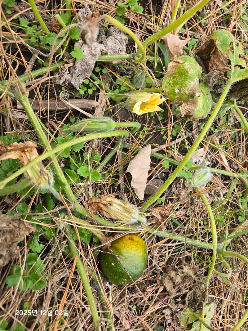 맷돌호박이 익어 줄기에서 떨어져 나오고 있어 빨리 수확을 해야 할 듯 합니다. 일부는.새 들이 구멍을 낸 것도 보입니다. 감귤나무에 농약을 한 번도 하지 안했더니 잎 상태가 좋자 않습니다. 오늘은 퐁퐁.소금.베이킹소다를 섞어 뿌려주었습니다만 얼마나 효과가 있을지 모르...