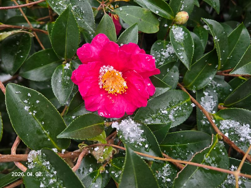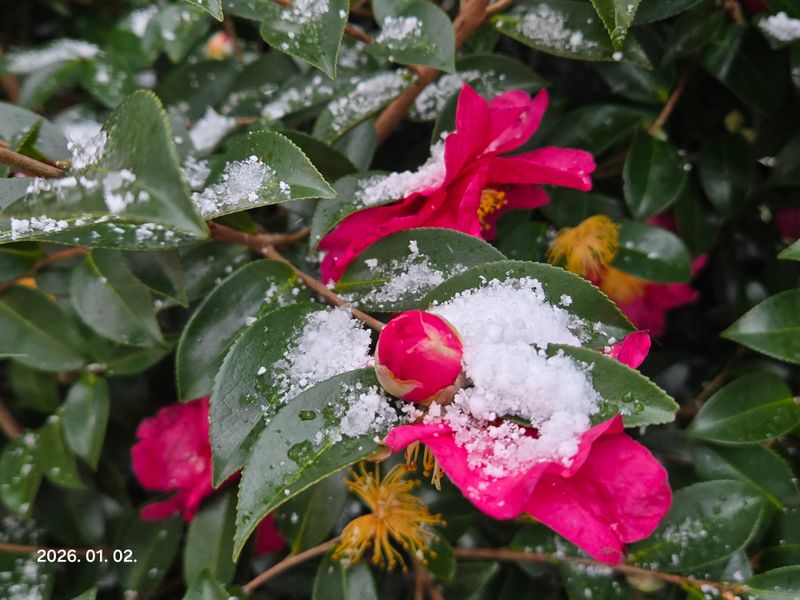 텃밭의 부추는 눈이 왔는데도 파랗게 서 있네요. 동백꽃을 촬영하다보니 그 나무 곁에 부추밭은 찍히지 못하고 말았습니다. ㅎㅎ
