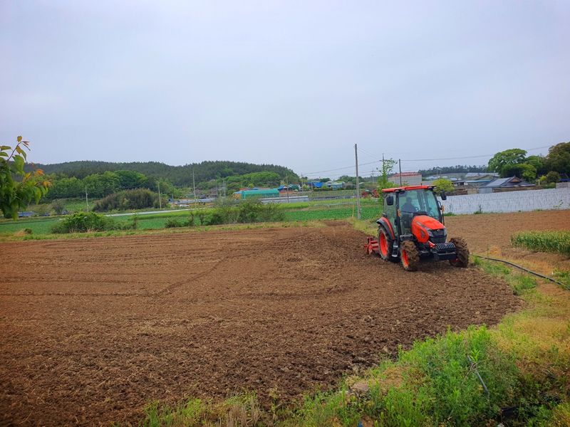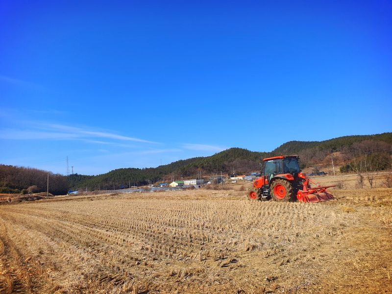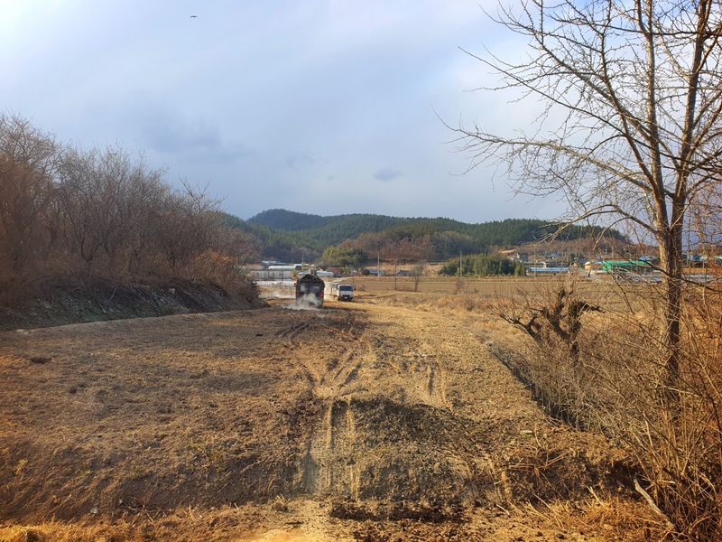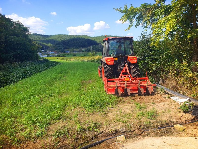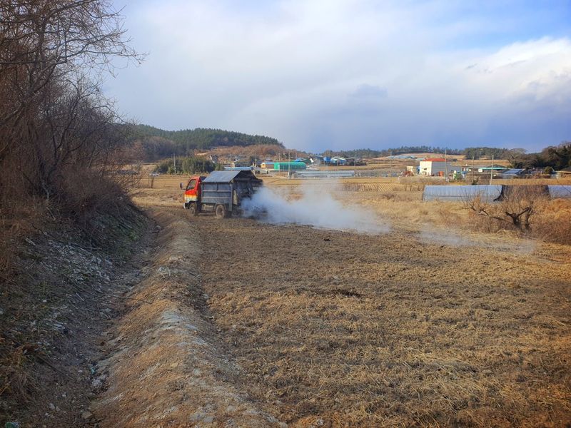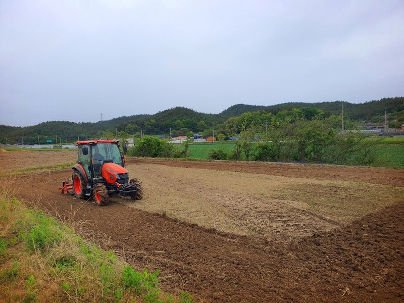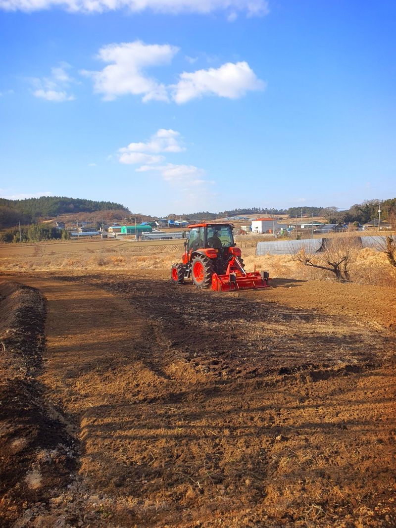 칼슘 유황 비료를 살포했습니다 그리고 트랙터로 로터리 작업을 했습니다 시운전 하고