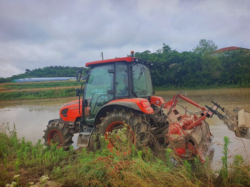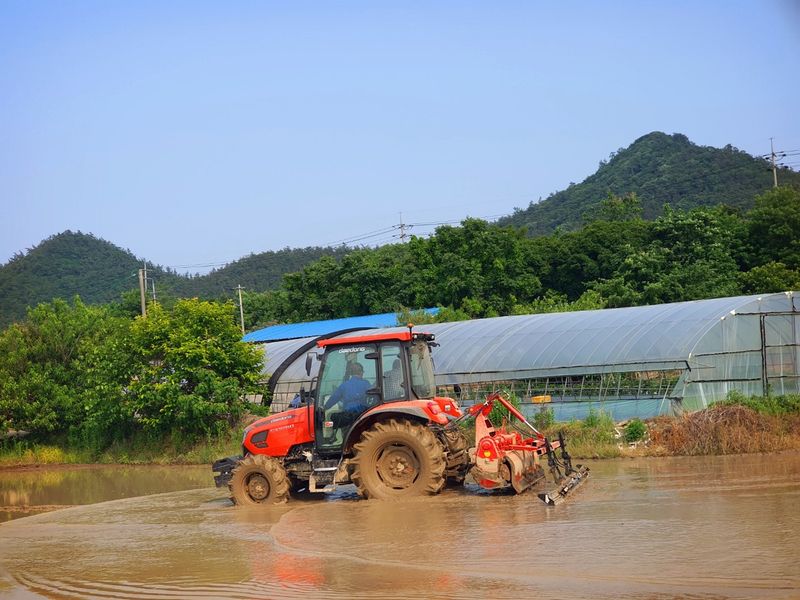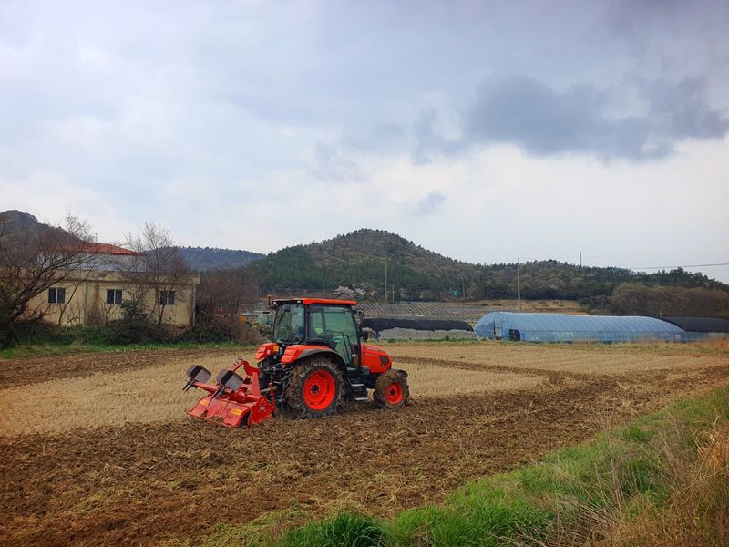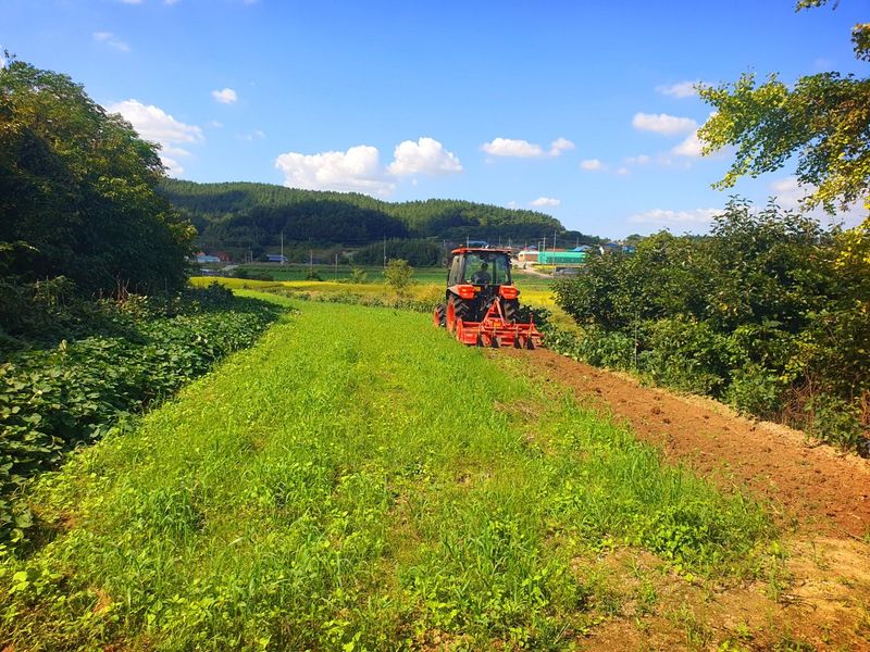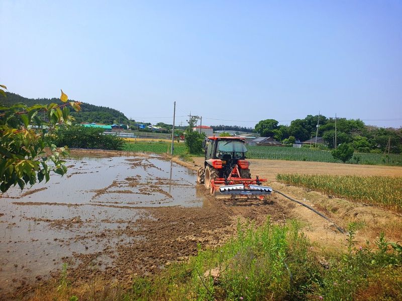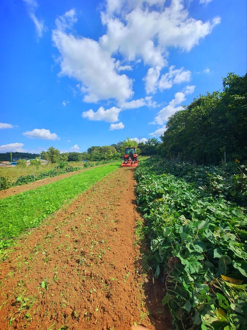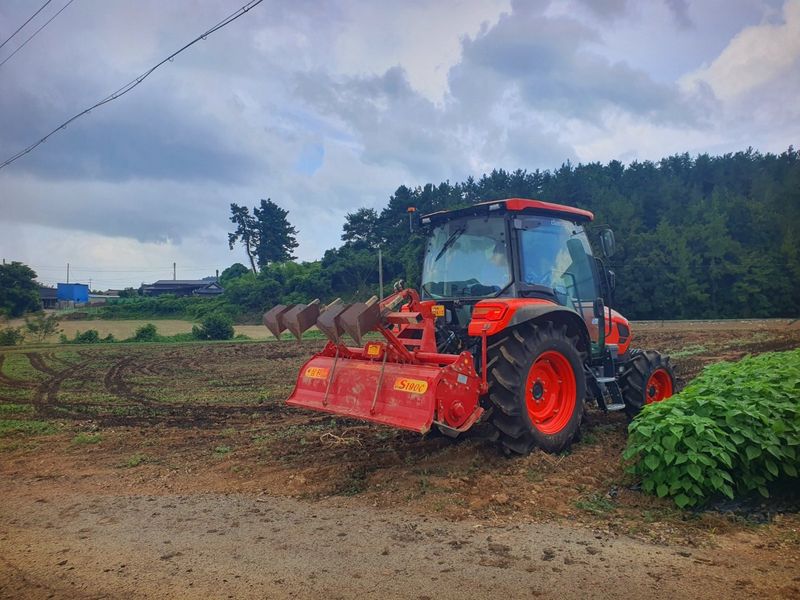 칼슘 유황 비료를 살포했습니다 그리고 트랙터로 로터리 작업을 했습니다 시운전 하고
