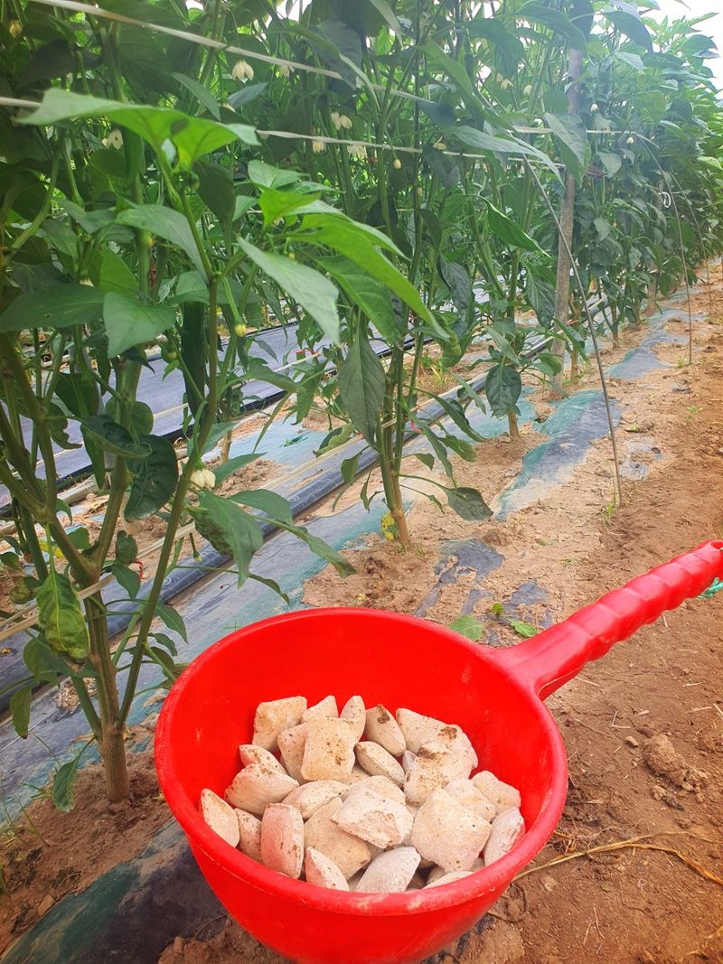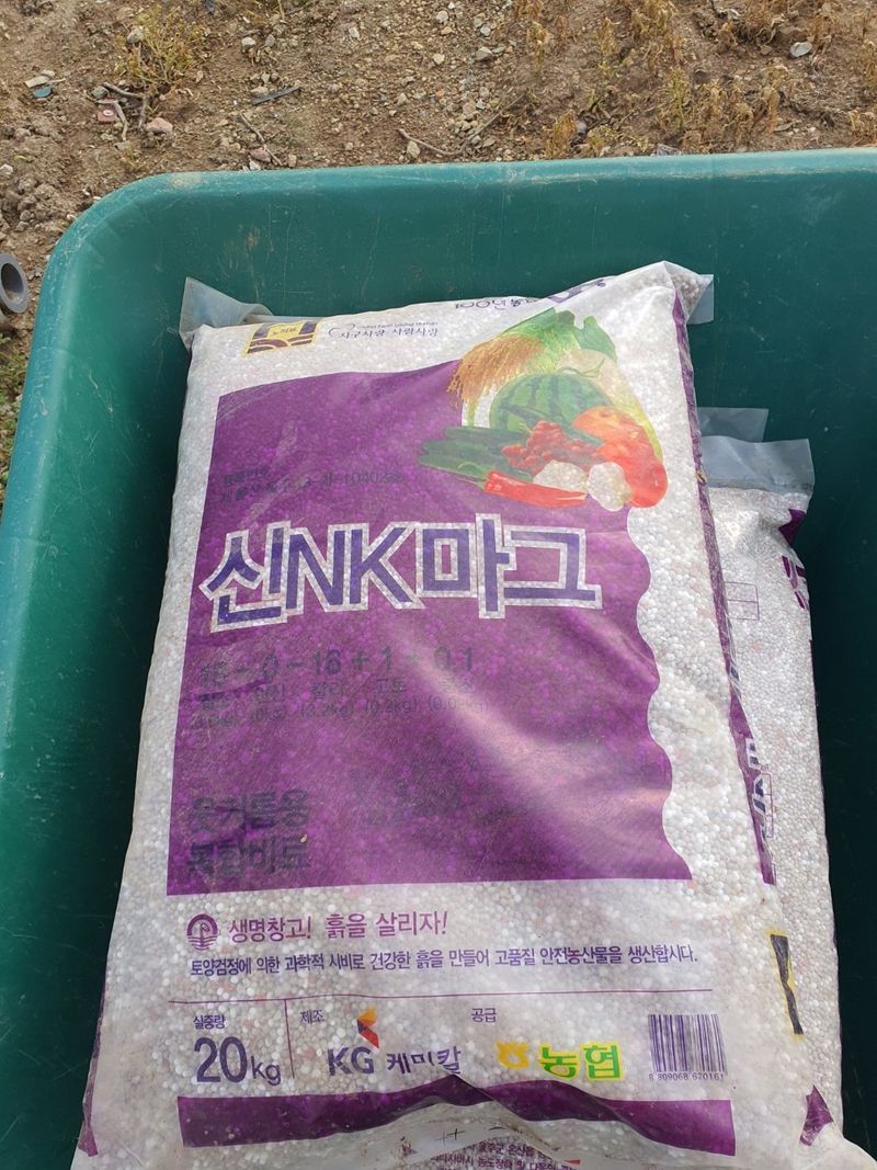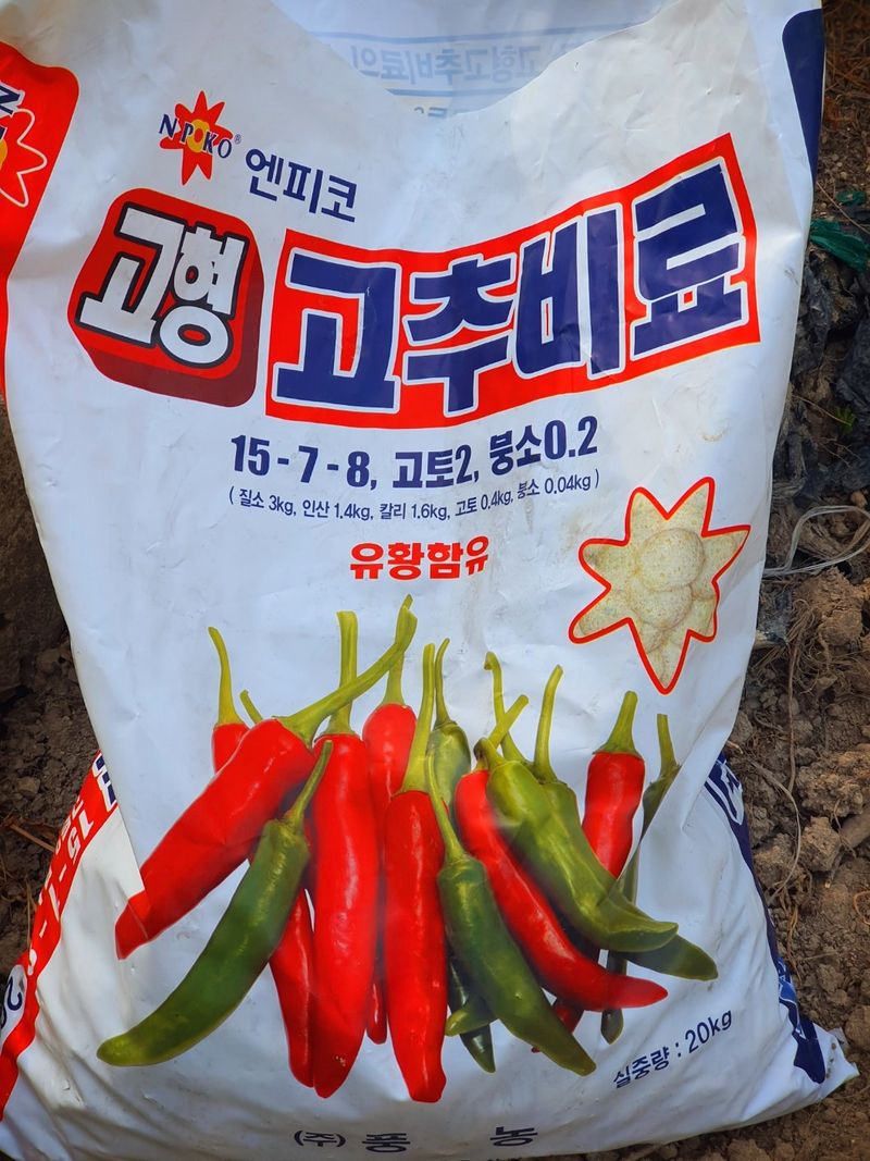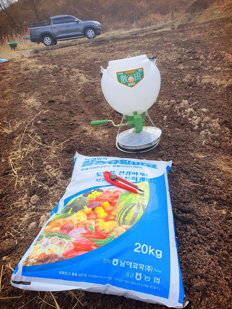 고추밭 만들기 칼슘 유황 비료를 살포했습니다 350평 20kg×7