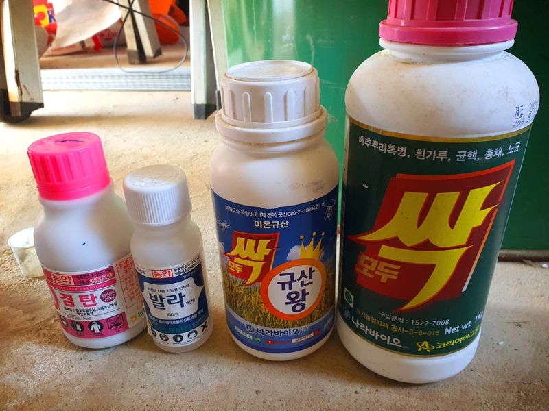 모내기 후 10~15일 경에 물을 깊이 대고 중기 제초제를 살포 했습니다
