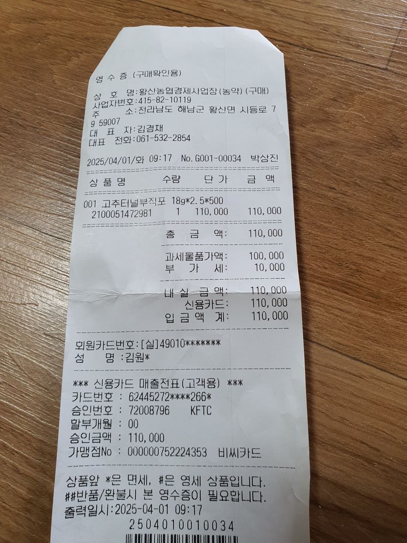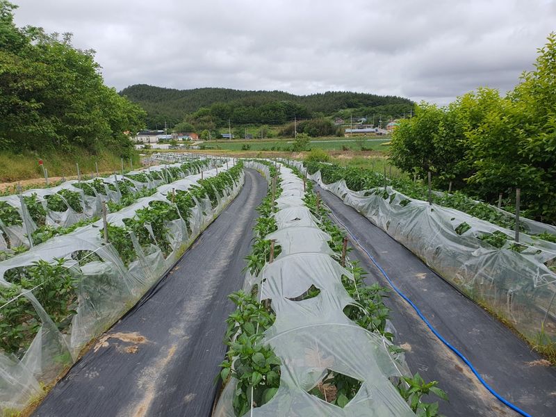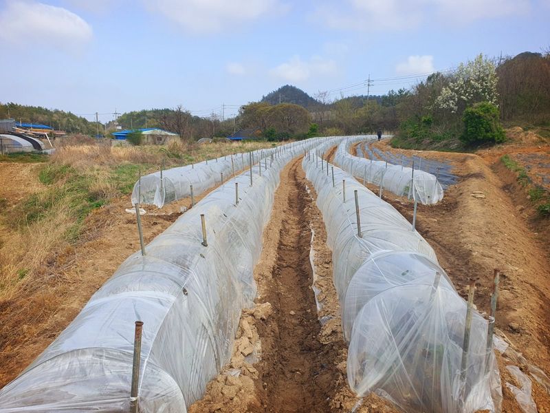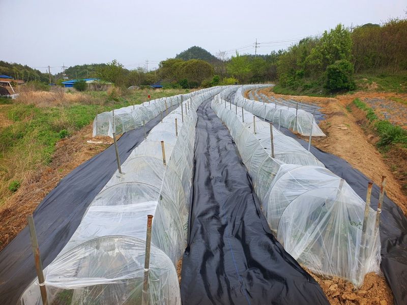 터널식 고추밭 준비완료하였습니다 부직포 터널 재배 영수증을 첨부 하였습니다